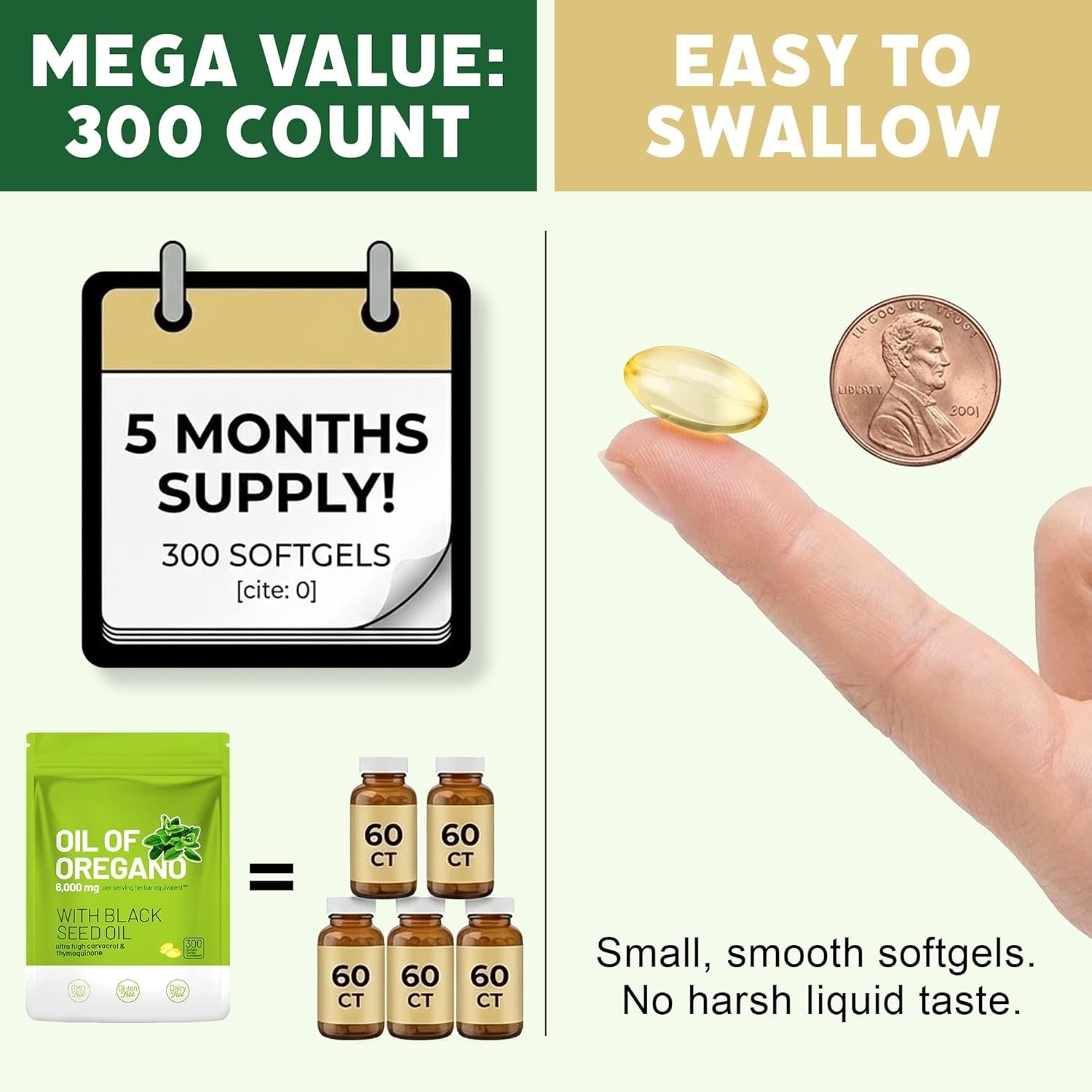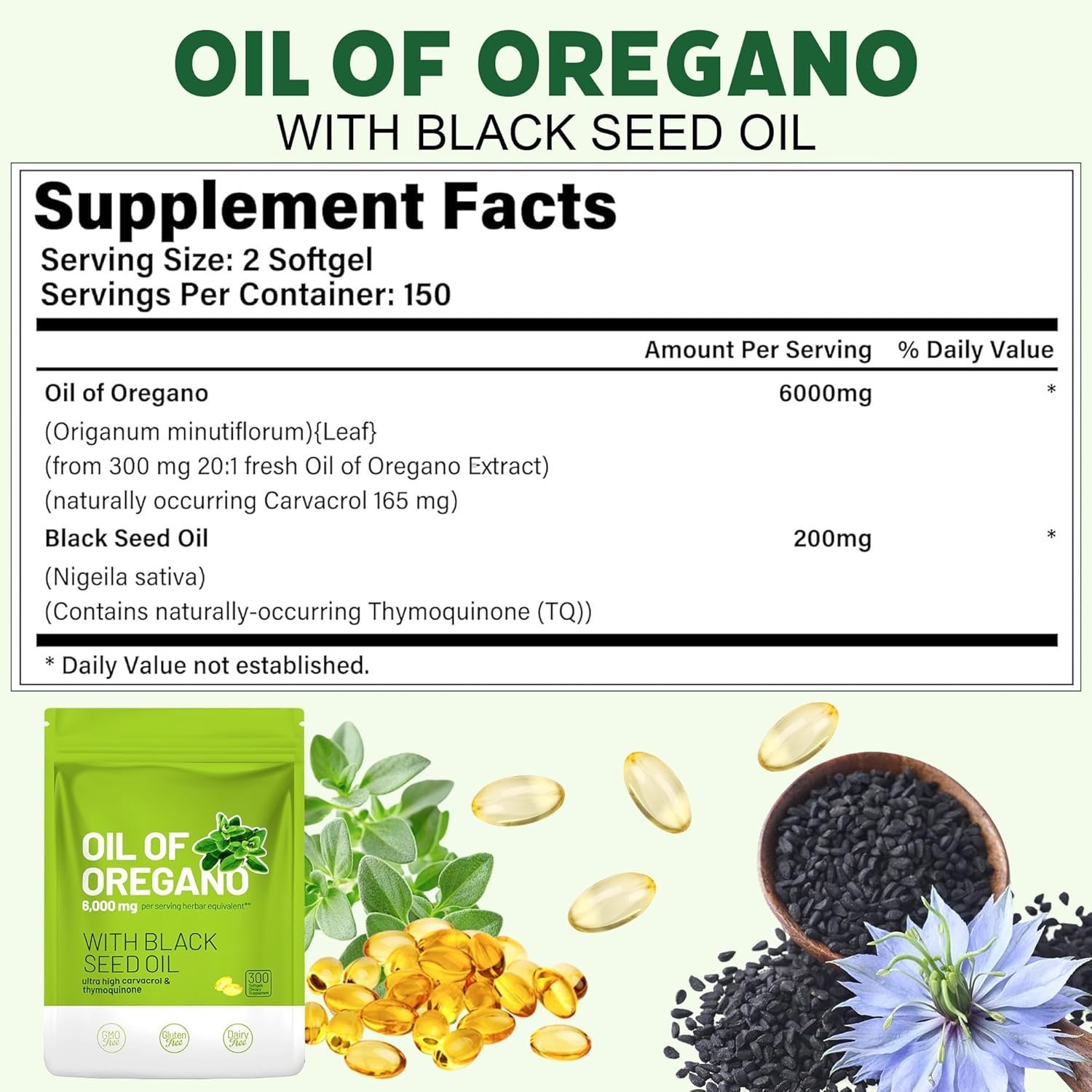 Aceite de Orégano con Aceite de Semilla Negra 300 Cápsulas | Antioxidantes Naturales | Apoyo Nutricional | Suplemento Alimenticio Botánico de Alta Eficacia para la Salud