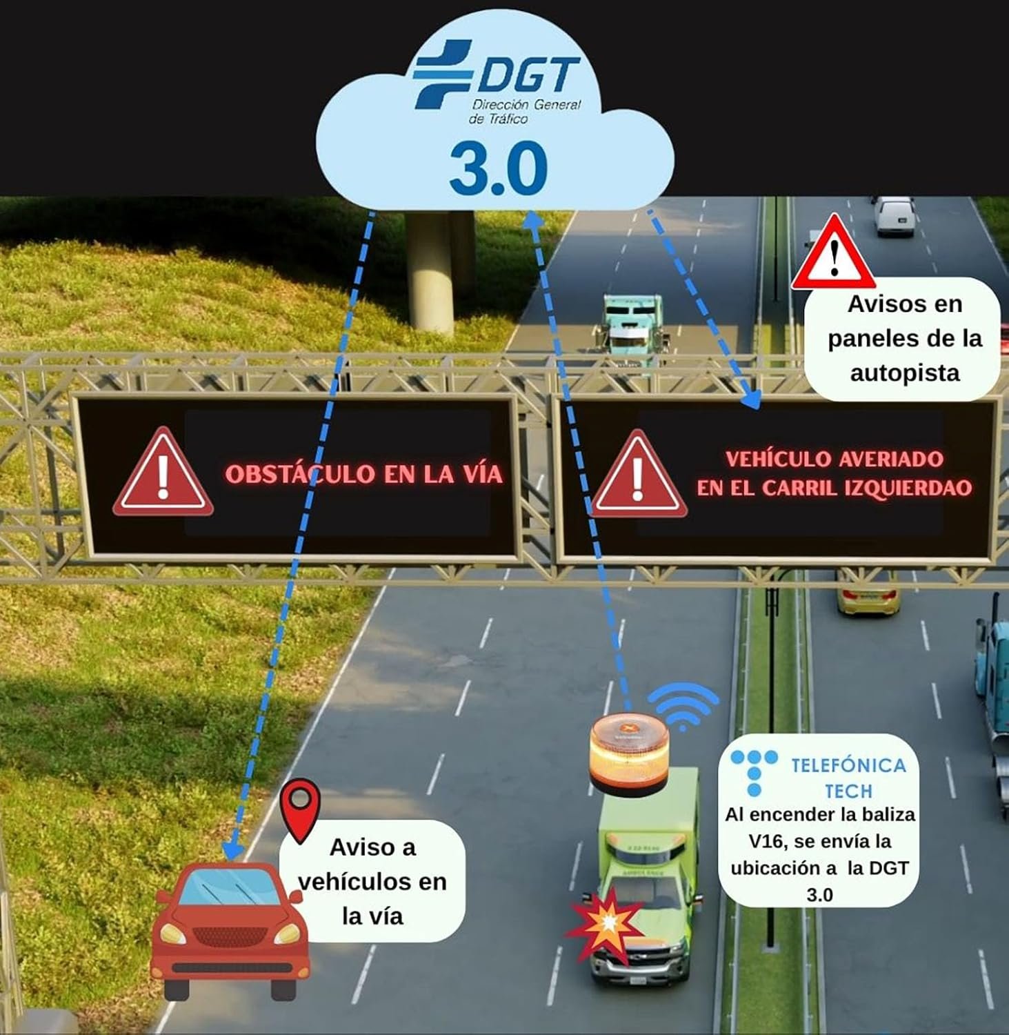 La se?al del V16 no se interrumpe, incluso en espacios cerrados o subterr¨¢neos.