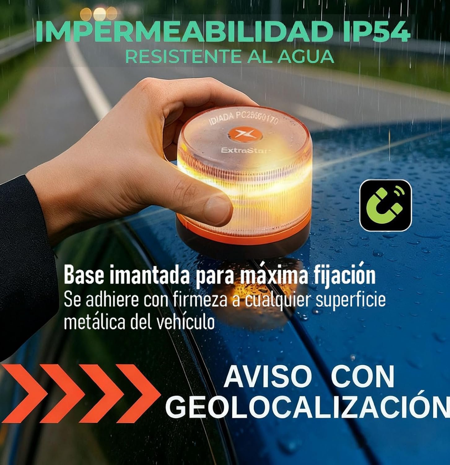• SECURE INSTALLATION AND WITHOUT LEAVING THE CAR – High fixing magnetic base allows the beacon to be easily placed on the roof of the vehicle without being exposed to traffic, minimizing risks to the driver.