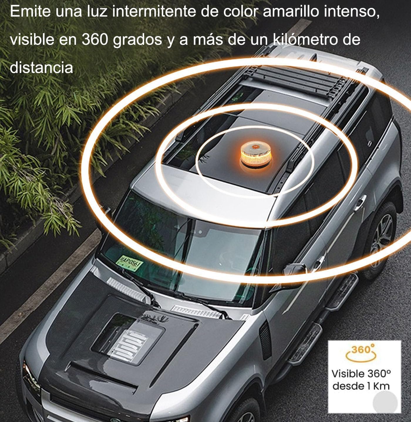 • 360° MAXIMUM VISIBILITY – Bright yellow LED flashing light, visible in 360° and more than 1km away, ensuring other drivers detect your vehicle even in fog, rain or low brightness.
