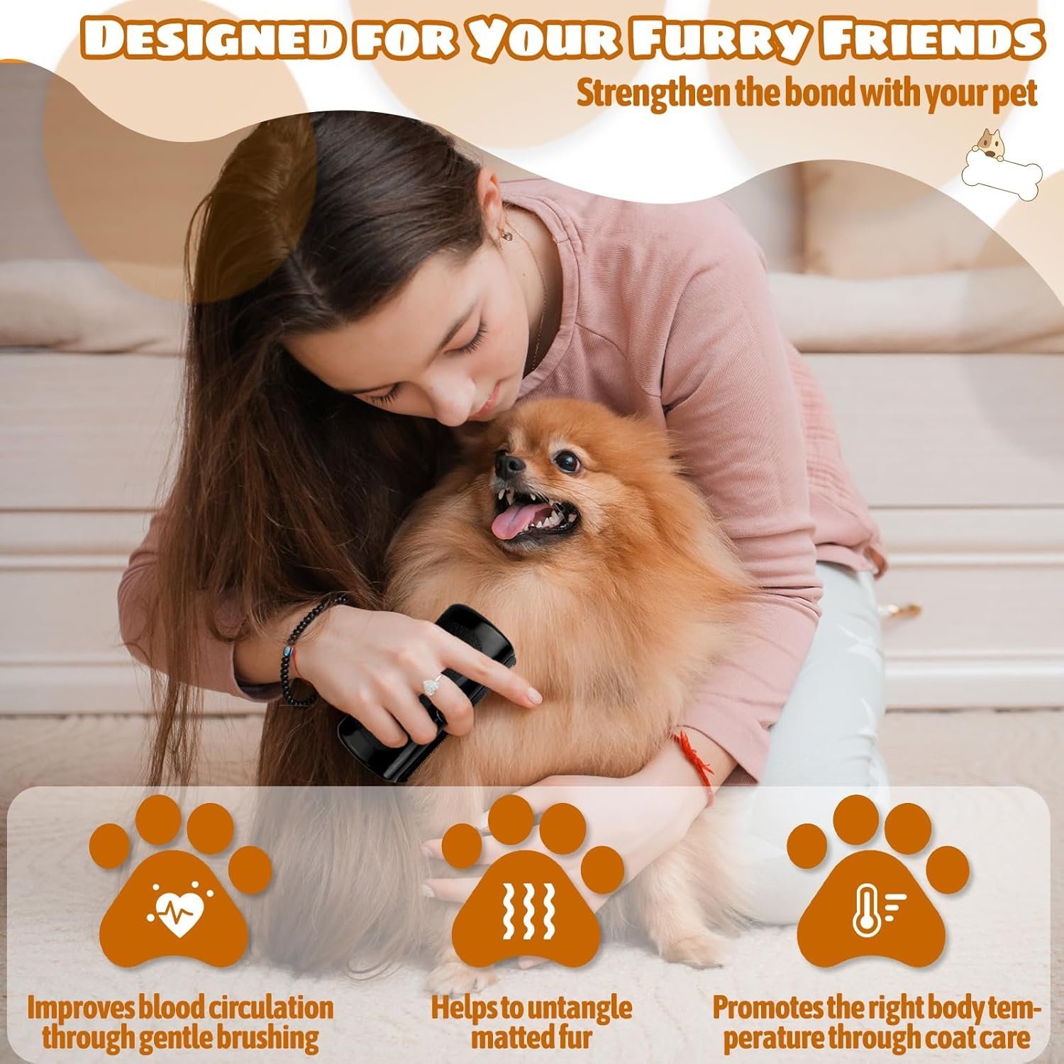 • Less hair in the home: With regular use of the brush, you can significantly reduce the amount of hair in your home. Remove dead hair and tangles before putting on furniture or clothes. This keeps your home cleaner and more well-groomed and you need to spend less time cleaning.