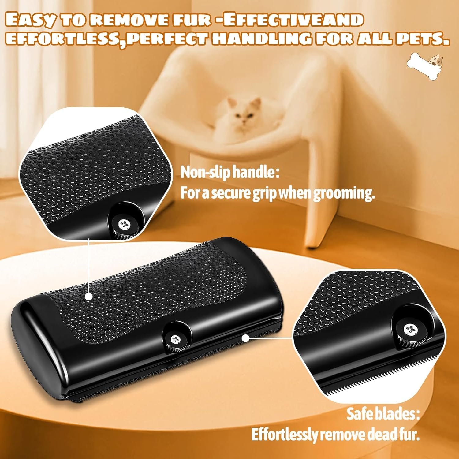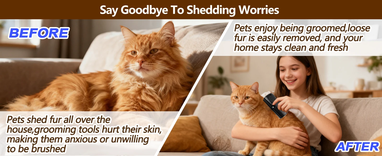 Este cepillo está diseñado para eliminar eficazmente el pelo suelto y la capa interna muerta, reduciendo la caída de pelo en casa hasta un 90%. Al mismo tiempo, distribuye los aceites naturales de la piel, dejando el pelaje más suave, sedoso y brillante.